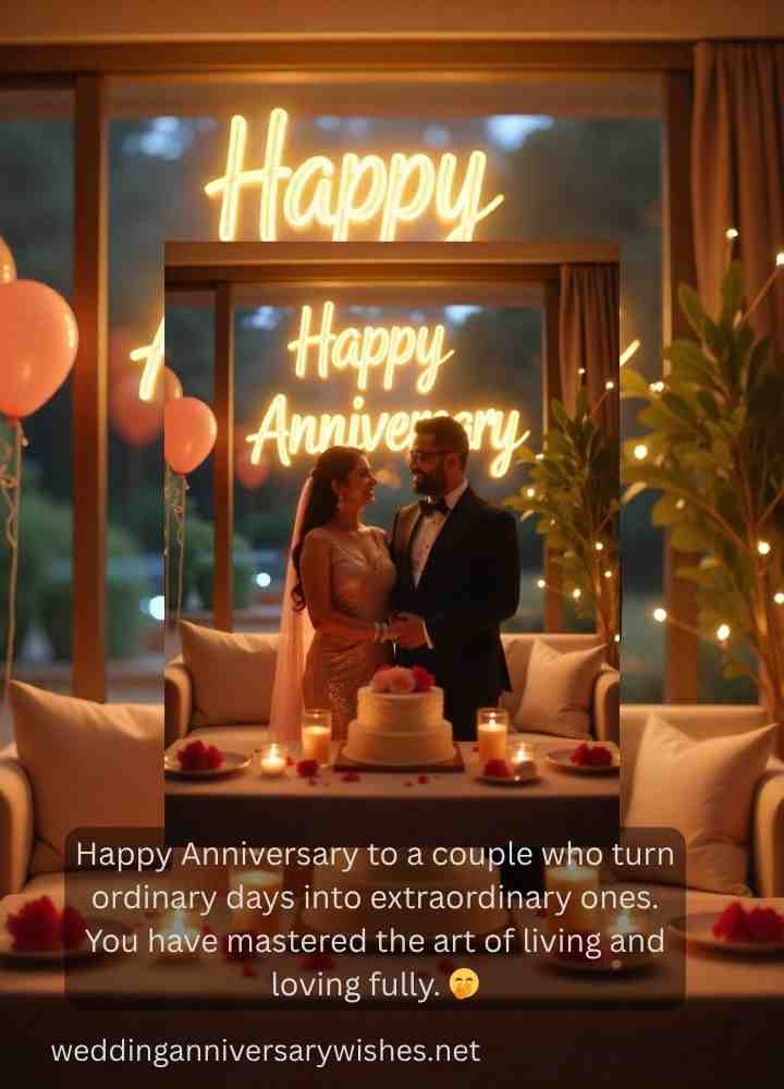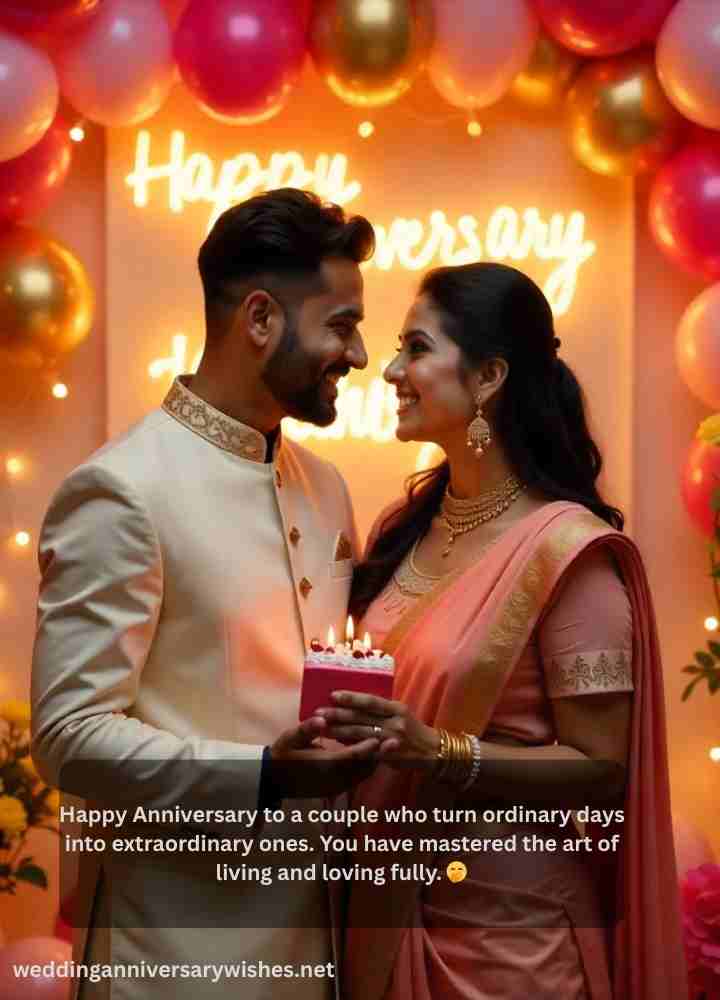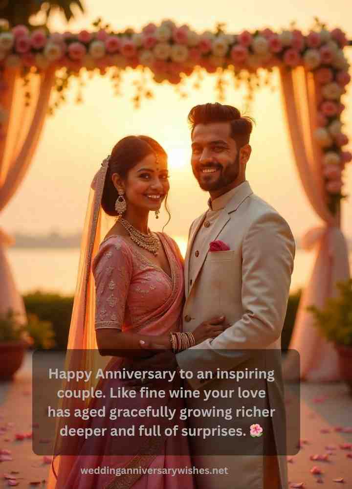 Happy Anniversary Keep creating memories that turn ordinary moments into timeless treasures. Like fine wine your love has matured beautifully bringing joy wisdom and devotion. 🙌