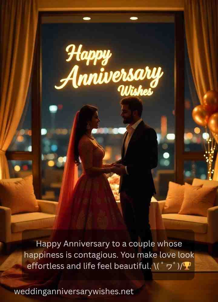To a couple who makes marriage look effortless and joyful Happy Anniversary May your love continue to shine and grow like fine wine. 🎂